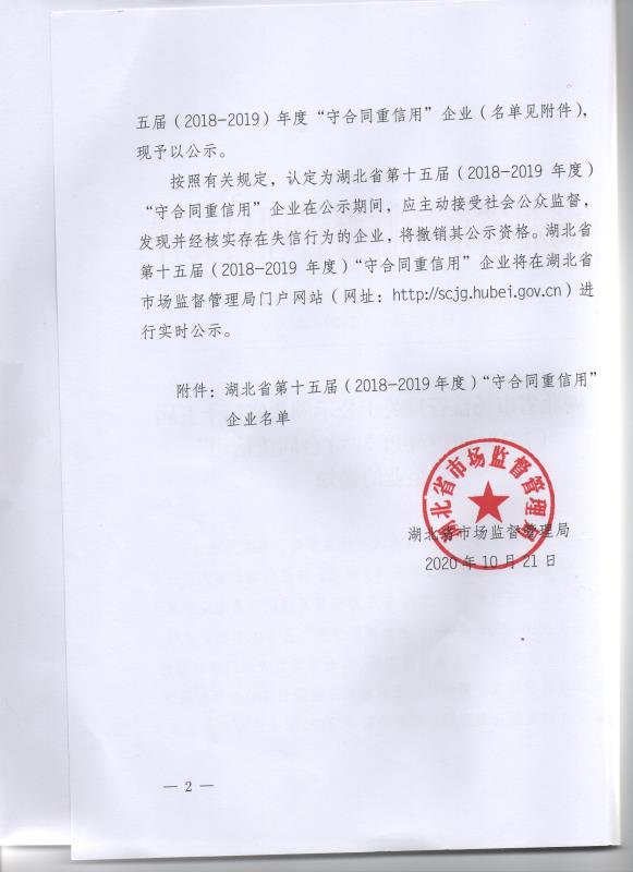 湖北省守合同重信用企业