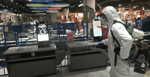周强:“我们每天都有一次第三方公司进行的专业的全场消杀,超市内的每个区域也配了消毒喷壶,消毒水也是直接配比好的84消毒水,要求的是每2个小时销售员所辖区域就要喷一次。另外我们的入口、测温处特别是收银台,我们每一个收银员都有一个消毒喷壶。”